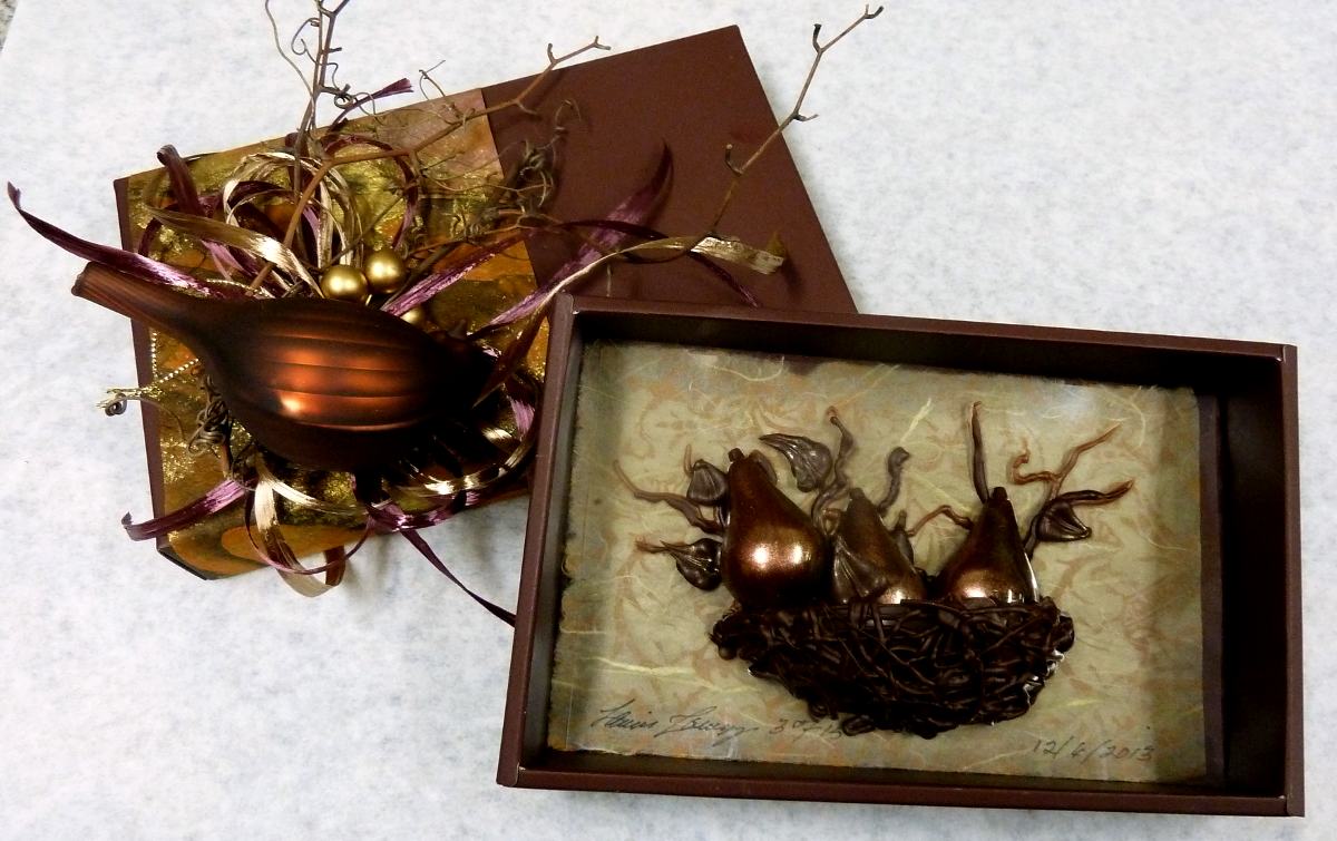 I have a thing about nests, so this seemed like a good challenge. What I didn’t realize is that chocolate does what it wants, not what I wanted it to do. Once I figured that out, I think we got along fine… I hope that you agree. Happy Holidays! –Laurie