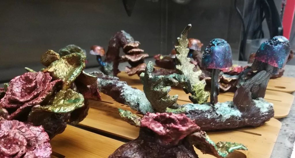 Edible sculptures for this weekend’s Valentine Chocolate Experience. We built these from caramel and three iterations of Heritage Grand Scarlet Robe wulong tea ganache. And a few other flavors as well.