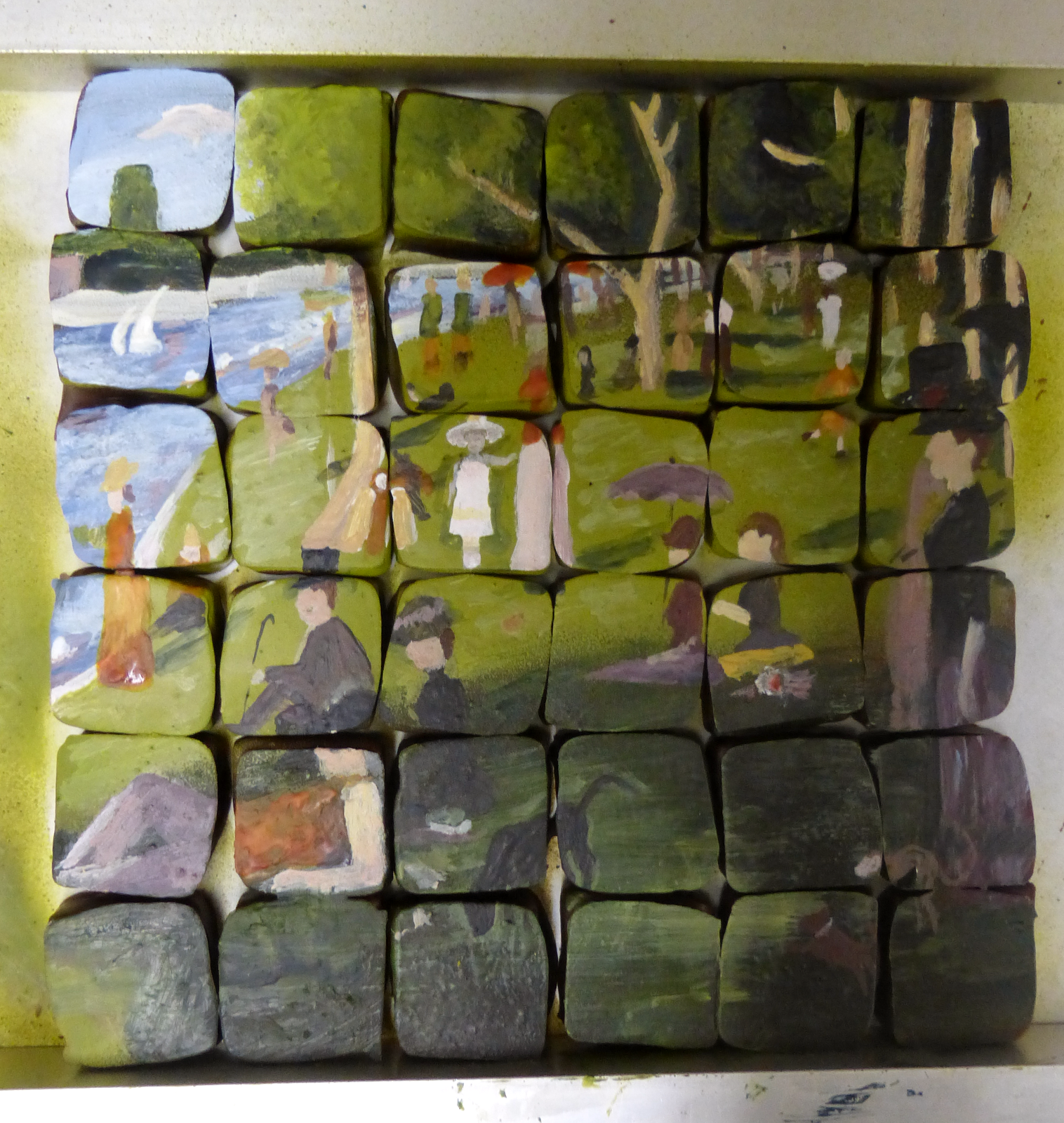Artist in Residence Katherine Donovan channels Georges Seurat on Artsy pointillistic style on her rendition of “Sunday in the Park.”