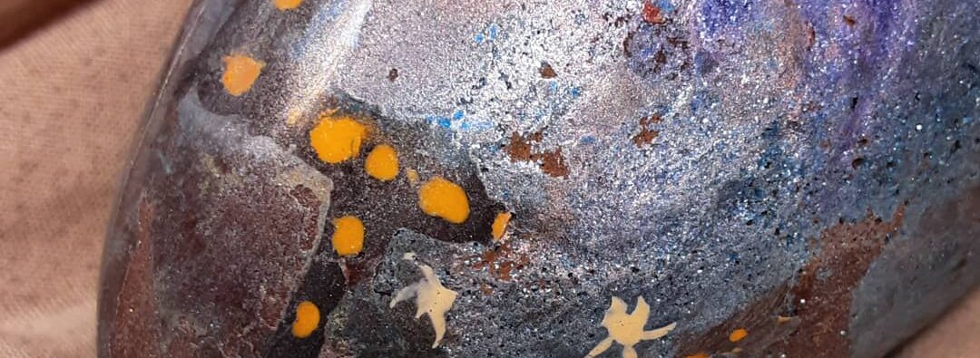 Structured and unstructured Beauty in broken Objects. Medium eggs of blueberry marshmallow cast in Dominican Republic dark chocolate.