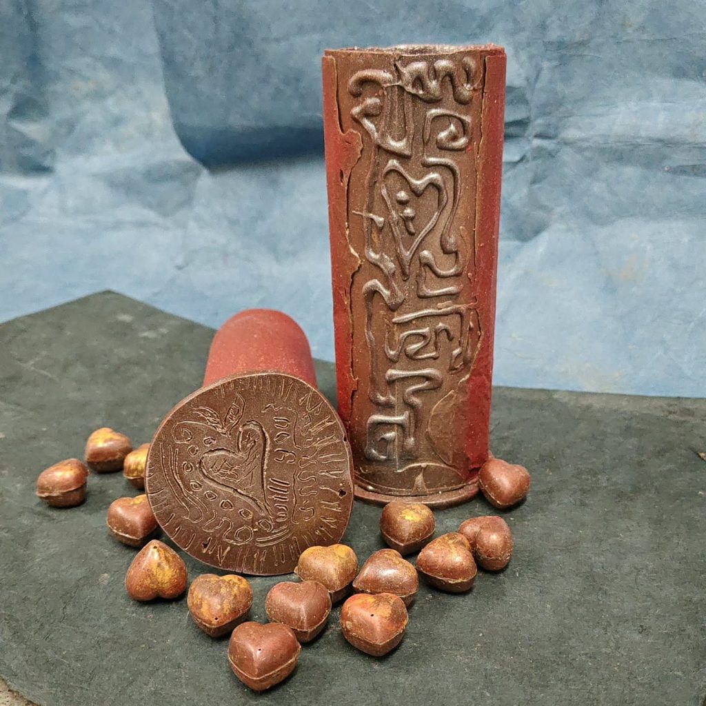 Sculpture with Heart January 24, 2025January 24, 2025Edible Art Chocolate Art by Richard Tango-Lowy. Cylindrical box filled with honey hearts.Chocolates are Puerto Rico dark, Peru Ucayali River dark, and a bit of Peru Piura.#chocolateasart #chocolatier #beantobonbon