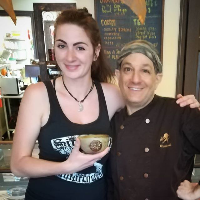 Artist Josie White designed our original drinking bowl as a New Hampshire Institute of Art graduate back in 2012. She found herself back in New England today and stop by the Shop. We still use her original bowls for Chocolate Espressos.