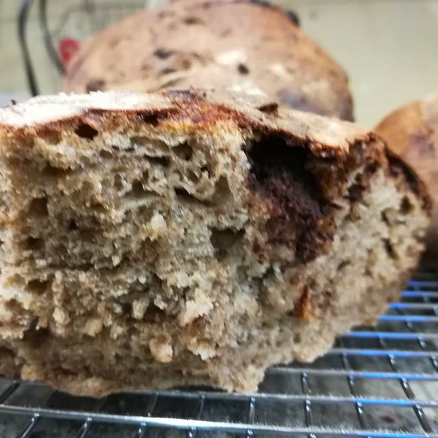 Next bake: Friday, April 13th April 6, 2018April 10, 2018At Our Cafe Chocolate with figs, I think. Small-farm wheat with chunks of Mesocacao’s Henry Haslam Estate Nicaraguan 70% and our own starter.