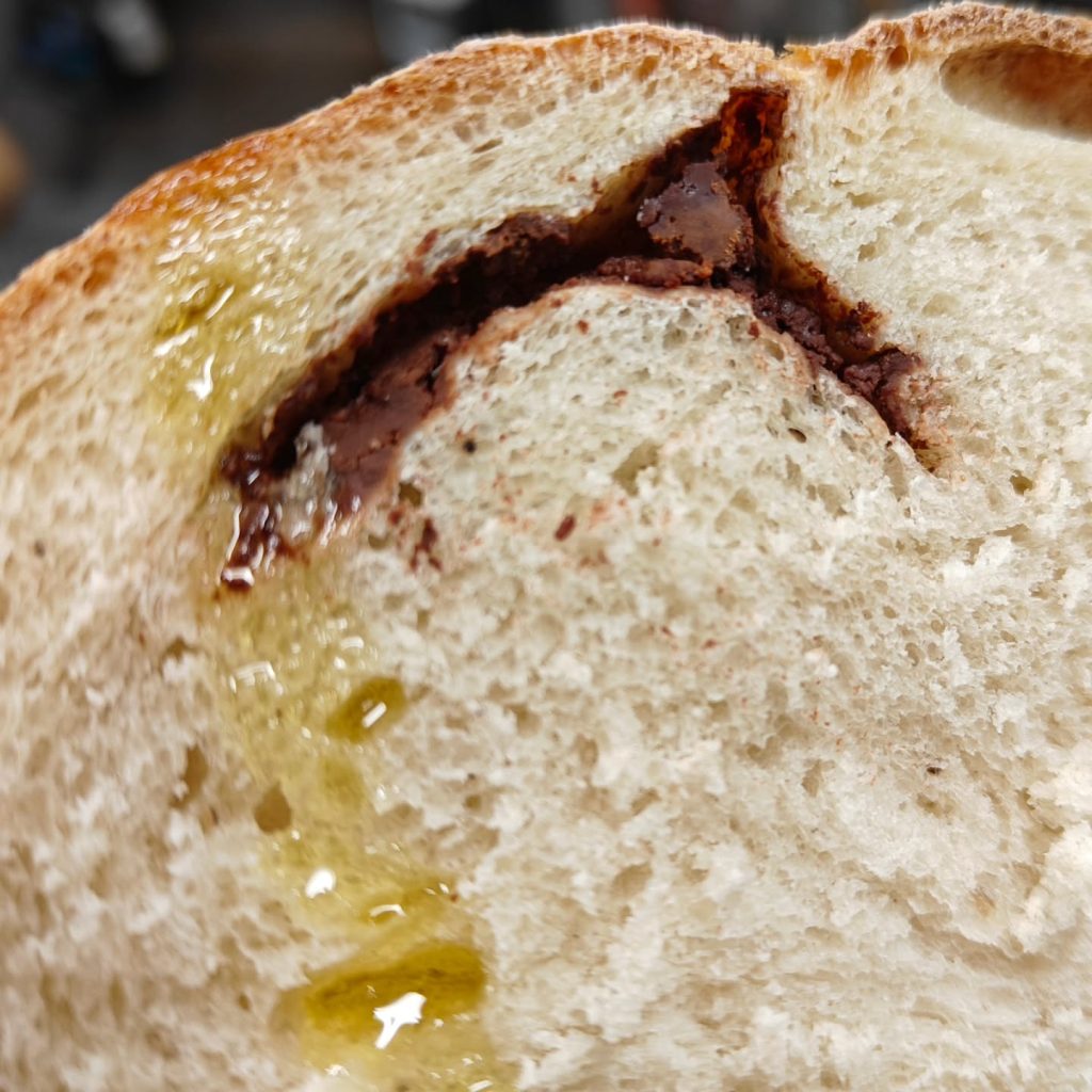 Bread Today April 12, 2025April 12, 2025At Our Cafe Bread today. Crushed peppercorns with blood orange and chocolate. Nice with olive oil or butter. Made a bunch of loaves.#chocolatier #breadandchocolate