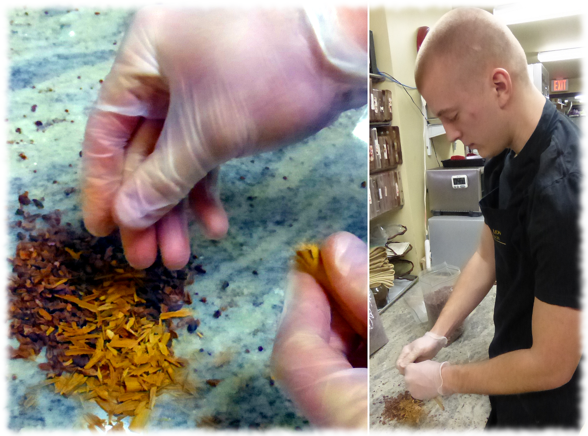 Cacao Tea March 7, 2015June 5, 2015At Our Cafe Kevin prepares tea Of Madagascar cacao And fine cinnamon A delicate aromatic infusion of cacao nibs with notes of sweet cherries and the lingering scent of Sri Lankan 00000 grade cinnamon. We steep the tea 4 minutes in hot water. It is available to drink at our shop or steep at home.