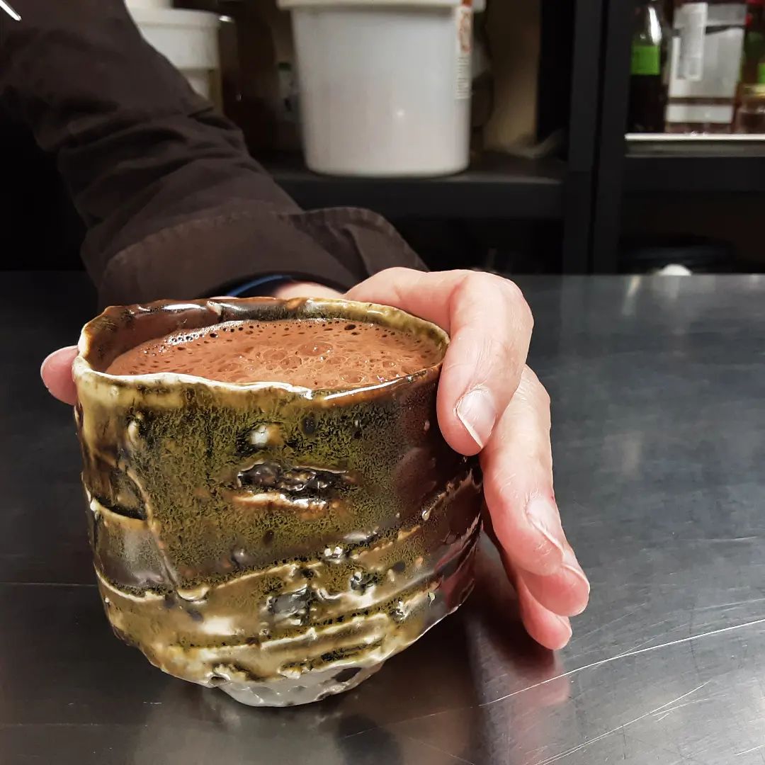 Green Cup, with Chocolate April 15, 2022April 15, 2022At Our Cafe CHOCOLATE DRINKING CUP, another piece by artist Cody Tamaian. For sale at our shop.#chocolatier #drinkingchocolate #ceramics @ct_ceramics #green Shop for Chocolate