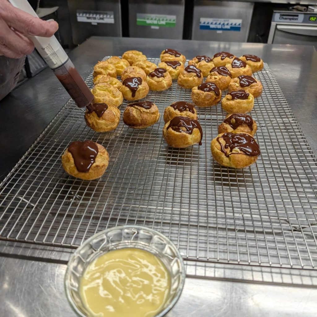 Cream Puff February 21, 2025February 21, 2025At Our Cafe Today and Saturday, until we run out. Chef Donna made cream puffs today with a ganache top hat. Limited life span. They’ll be available until mid-day Saturday.MaybeIf the staff stops eating them.