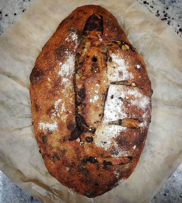 Bread on Fridays September 27, 2019October 3, 2019At Our Cafe Dark milk chocolate with pepitas in whole wheat and rye. #chocolatier #artisanbread #breadwithchocolate #pepitas