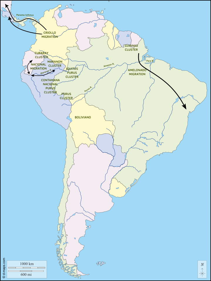 | IV | Criollo | Criollo | Central America via northwest South America | 2 |