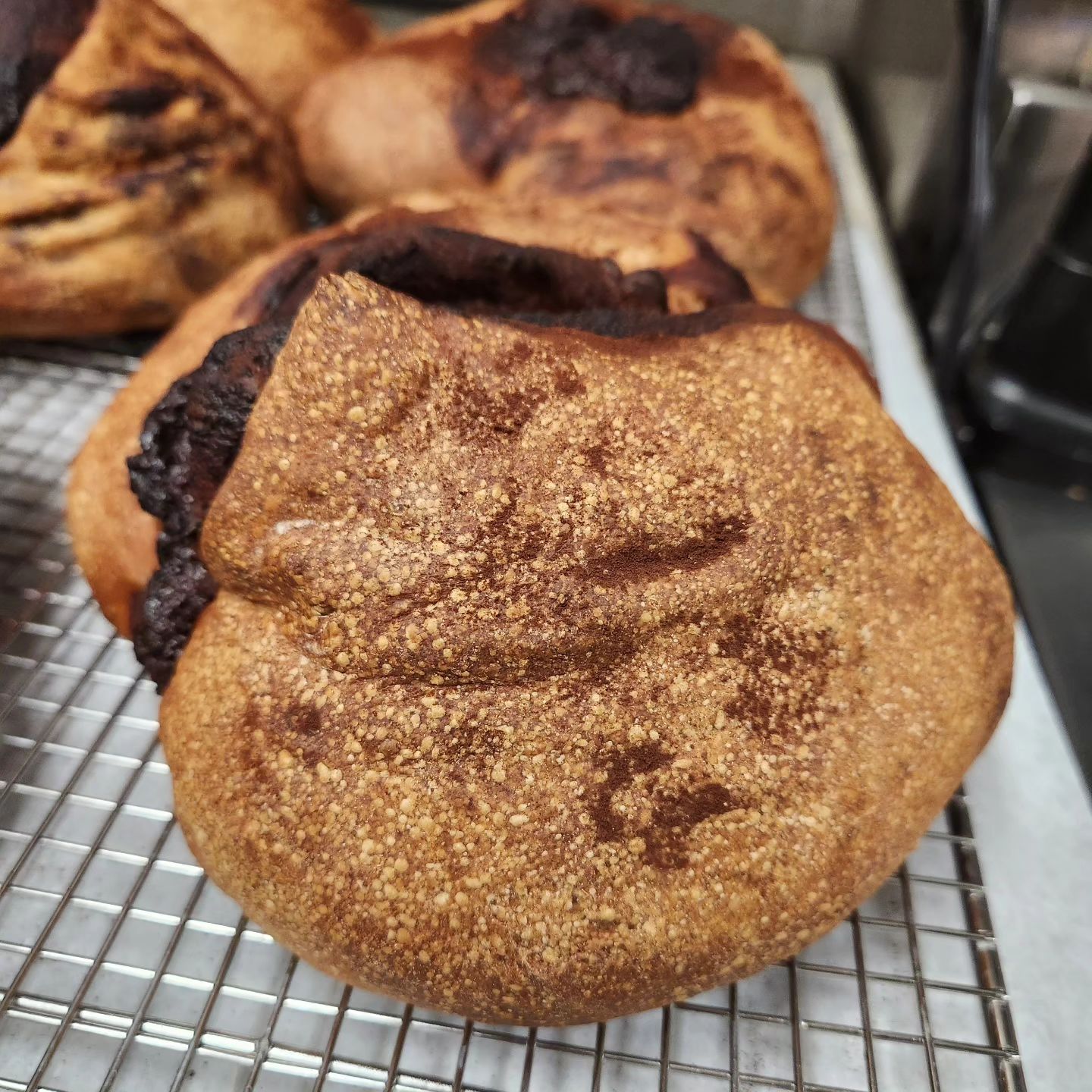 August 11, 2023August 11, 2023At Our Cafe Bread with Chocolate Ganache, Friday and Saturday Fresh out of the oven. I made the preferment from our own starter. The crumb is airy, translucent, and gently sweet. Available […]