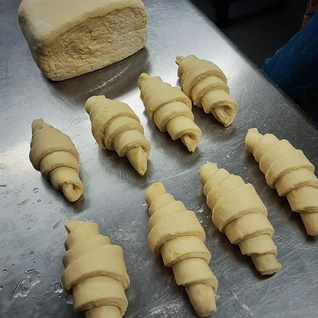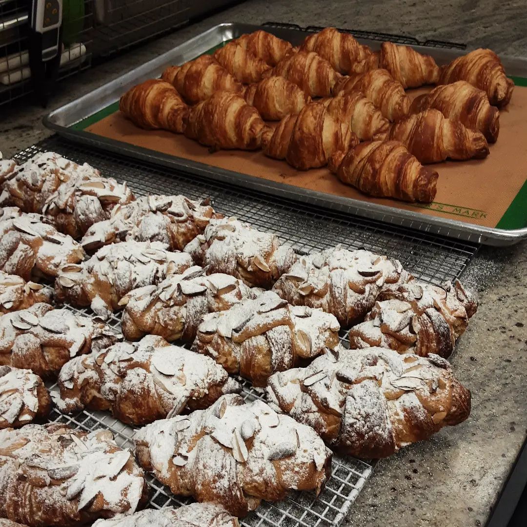 We have Almond Croissants available for purchase at our cafe. August croissants will be available to reserve tomorrow. Traditional, Chocolate, Almond, Kouignette.