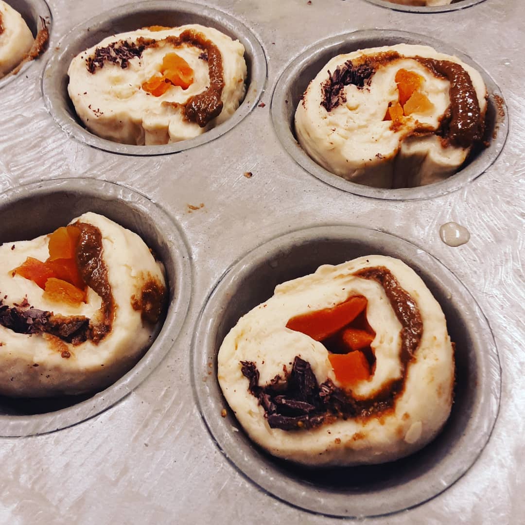June 19th’s Kouignettes were Pistachio Praliné Vanilla-soaked Apricots and Heirloom Bolivian Dark Chocolate. What will we make for July?