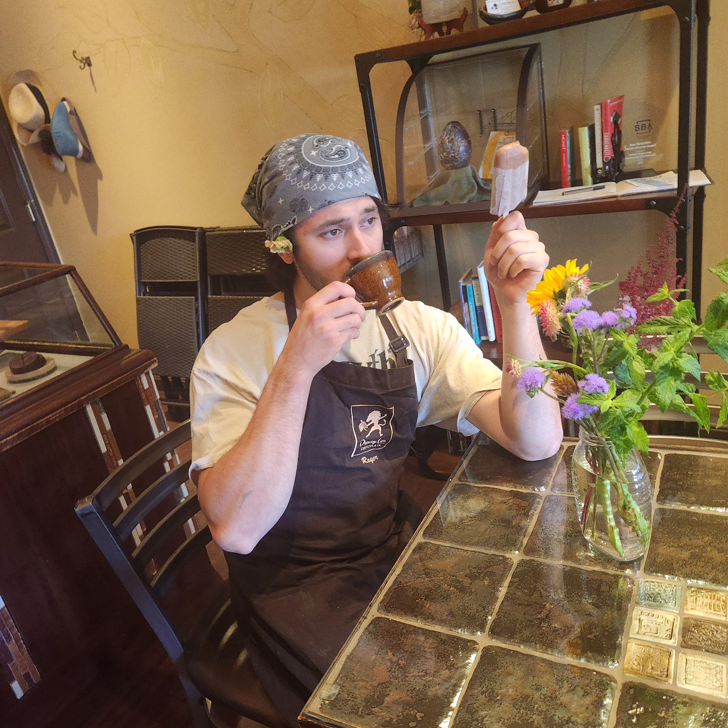 July 6, 2024July 6, 2024At Our Cafe Hot day, Cold Fudge Pop. Chocolate Maker Roger and Apprentice Chocolatier Angel contemplate fudge pops on a hot sunny day. #chocolate #fudgepop