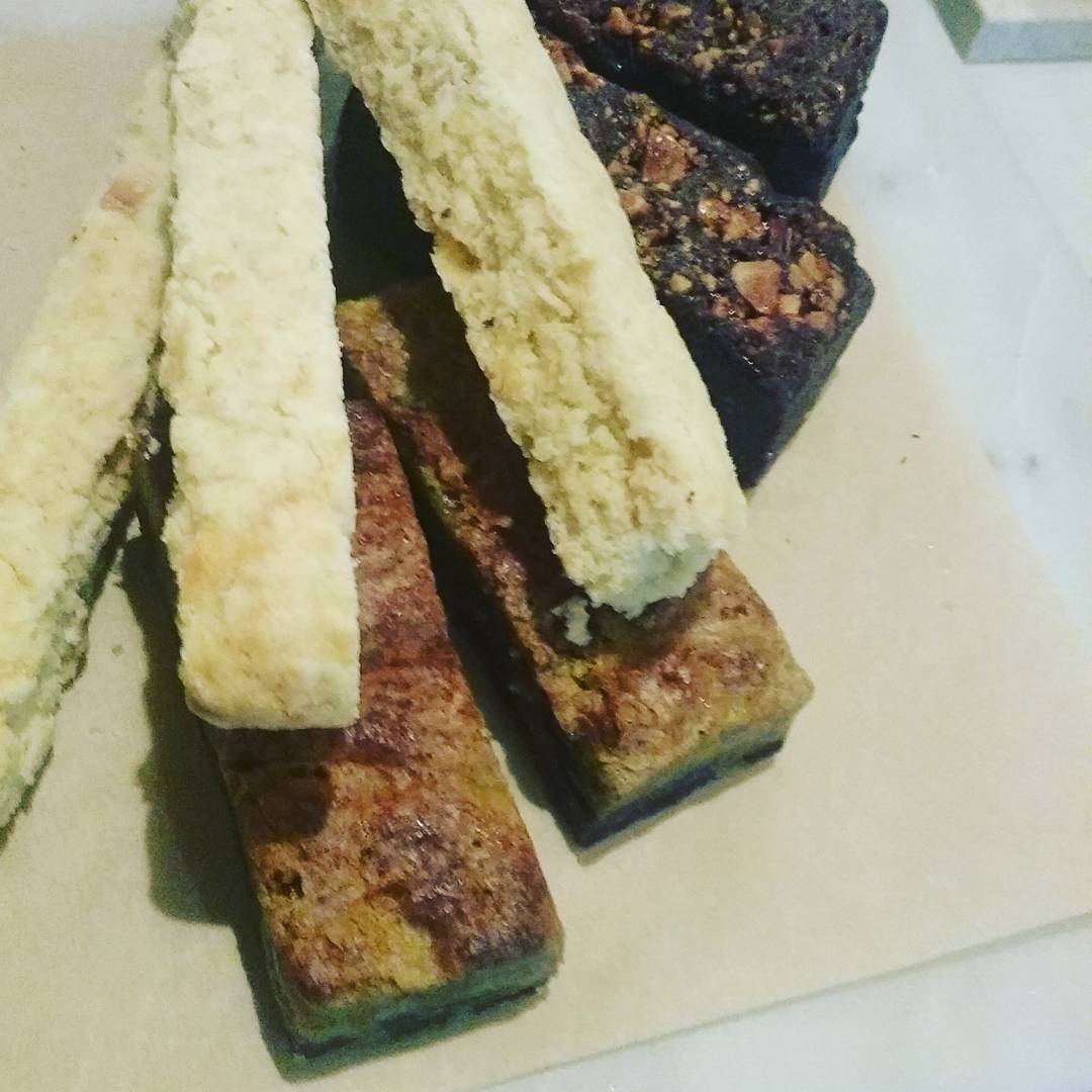 Two different GLUTEN FREE Zen Brownies this week. Our new Toasted Pistachio White Chocolate Zen Blondies, along with the Toasted Almond Dark Chocolate. A few pineapple Biscotti, as well