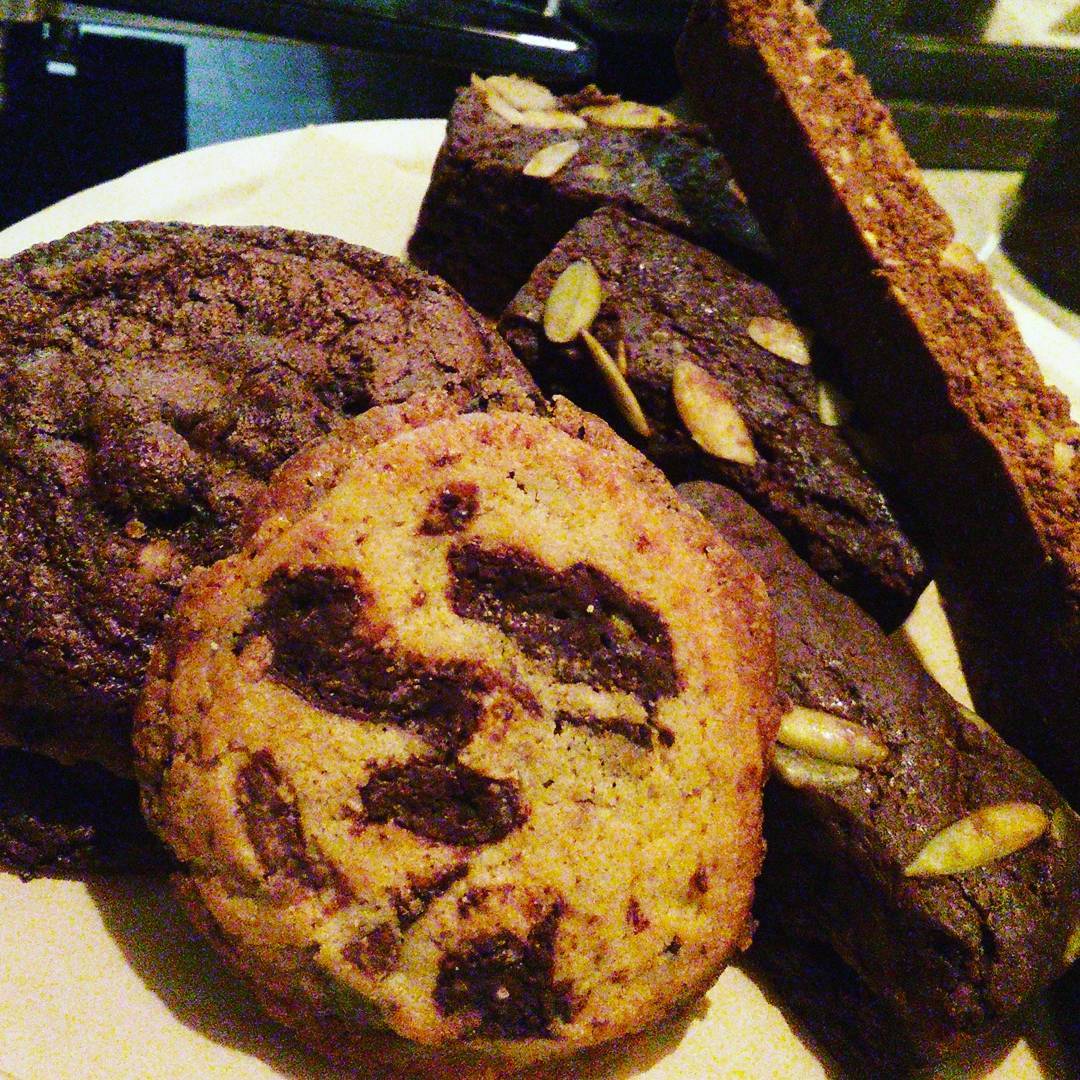 January 5, 2017January 5, 2017At Our Cafe Donna baked Double Chocolate Cherry Walnut cookies yesterday. With a Chocolate Espresso, yes? Pastries for today… Double Chocolate Cherry Walnut Cookie, Chocolate Chunk Cookie, Pumpkin Caramel Zen Brownie, Ginger Macadamia Biscotti