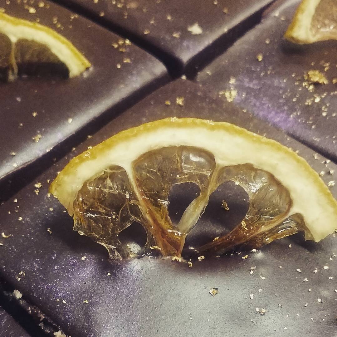 Lemon Lavender Caramel Shortbread Squares with house candied lemon wedges. Donna and Rich crafted these for a wedding commission, but saved a few for you the