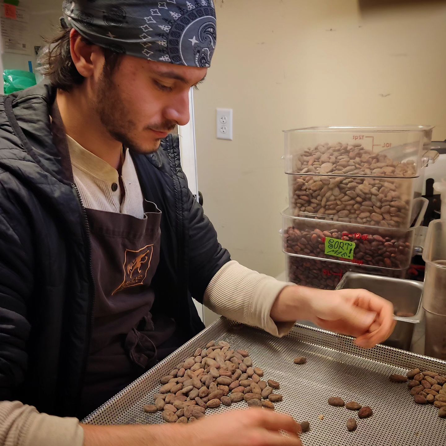 November 30, 2023November 30, 2023Bean-to-Bonbon Chocolate, Classes & Events Roger’s sorting Nicaragua beans Roger’s sorting Nicaragua beans from Lacuna Cacao. Next week they’ll get roasted, cracked, winnowed, and turned into chocolate for our upcoming creations. […]