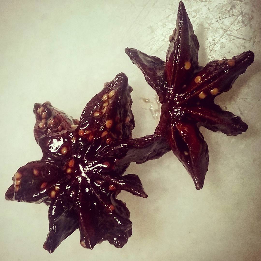 National cacao pods all in a row at Cooperativa Nueva Esperanza,
