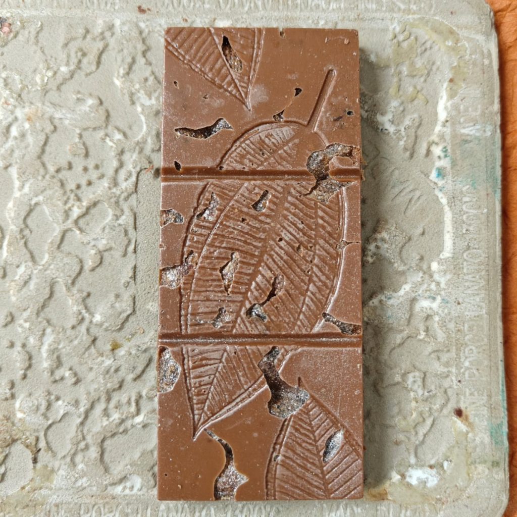 Mexico Almendra Blanca “white seed” milk chocolate with candied whole Bolivia Tranquilidad Heirloom cacao beans.
