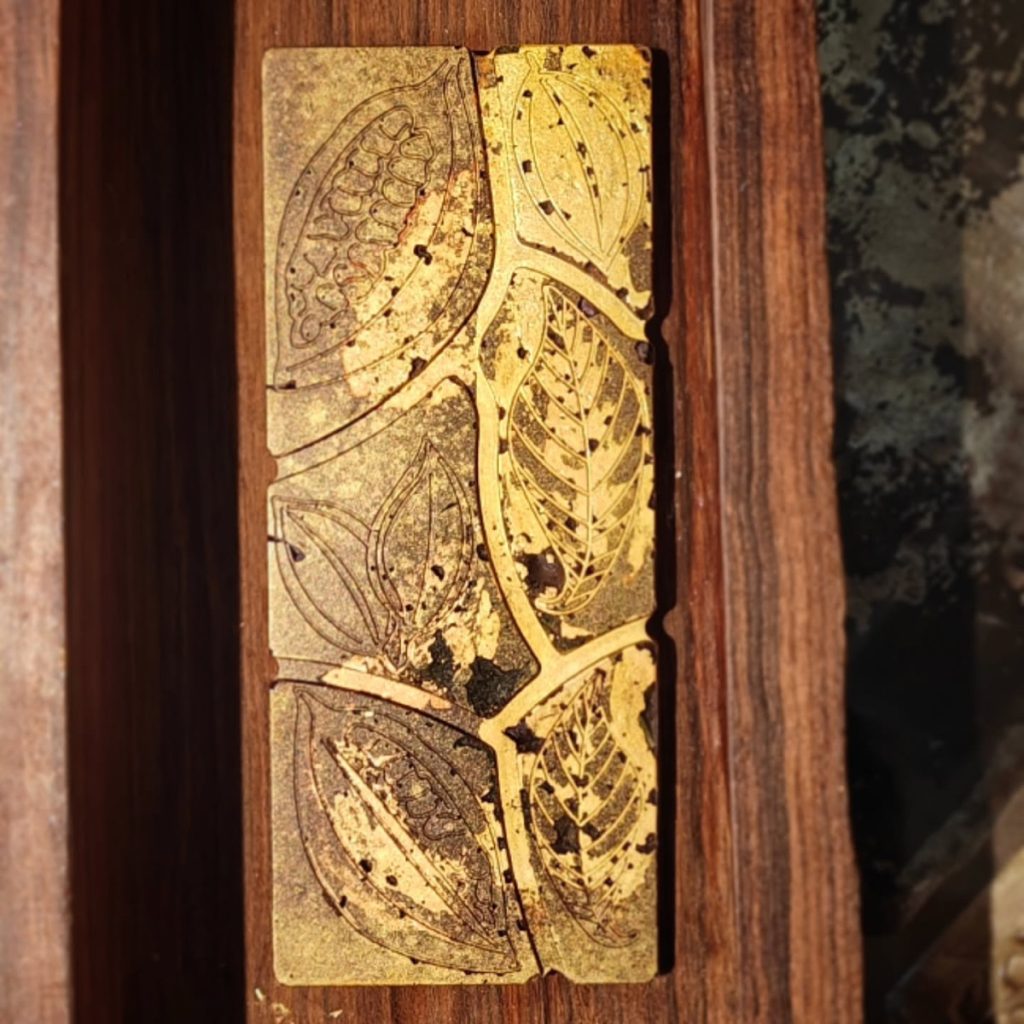 Gold on Green Bar July 8, 2025July 8, 2025Chocolate Bars Puerto Rico Jeanmarie 68% dark chocolate with Gyokuro tea and lavender. An elegant bar. Green tea, elegant against brilliant chocolate–Scent of lavender #chocolatier #chocolatebar #gyokurotea #puertorico