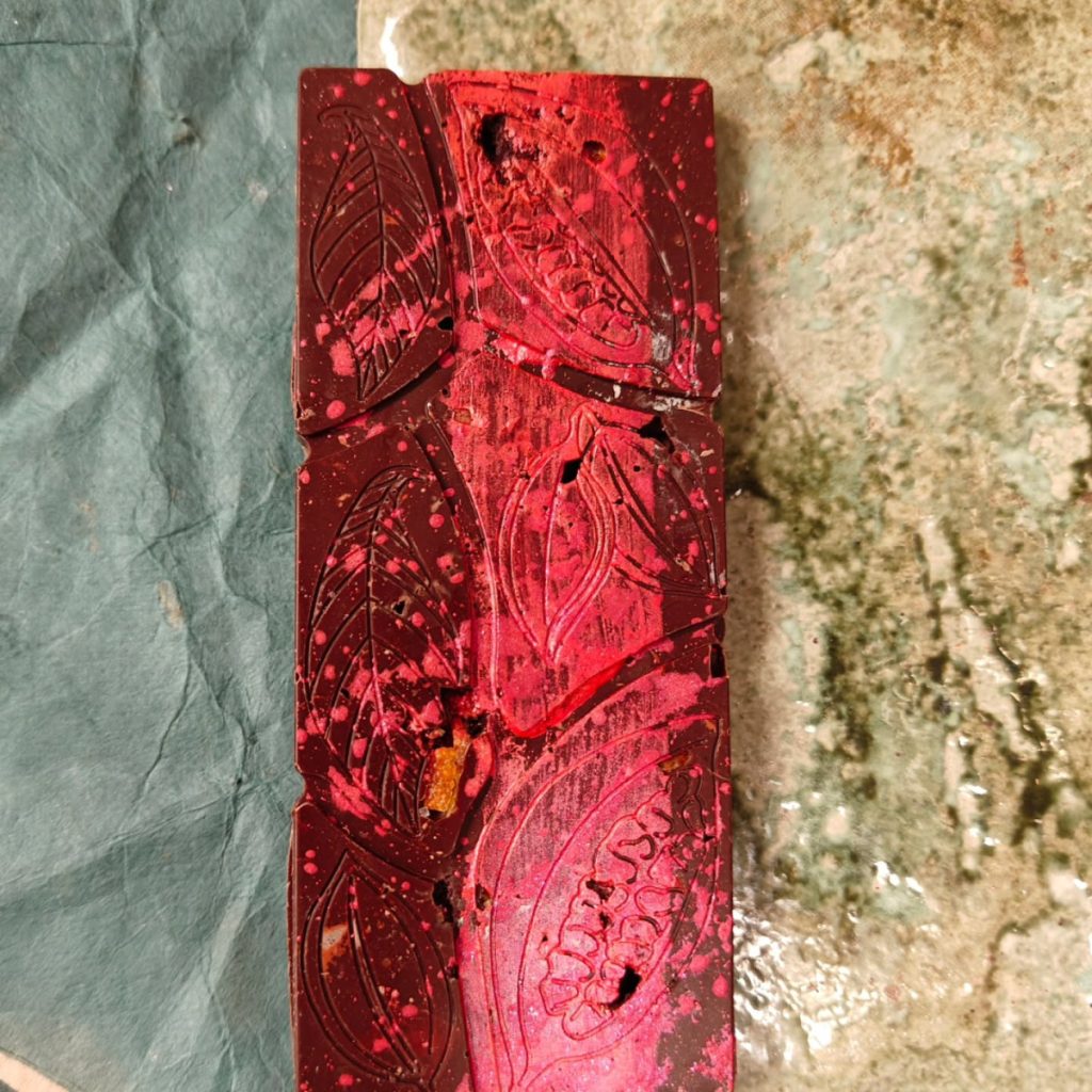 Bolivia Tranquilidad Heirloom 68% dark chocolate with blood orange rind and acai.
