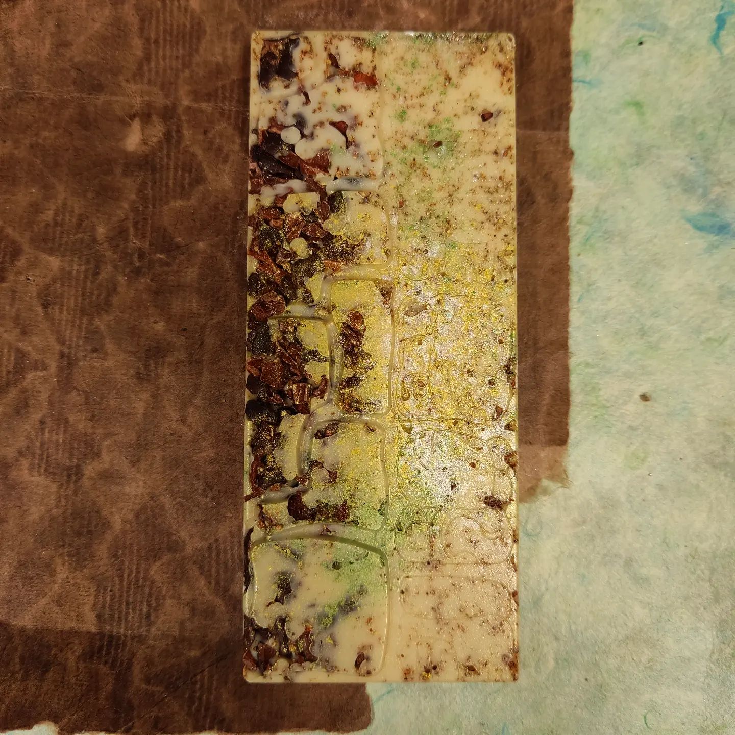 NATURAL BEAUTY bar. Clove and Vietnam red peppercorns with Mexico Almendra Blanca nibs in Mexico natural white 35%. Yeah, our Mexico White Chocolate is pretty darned nice.