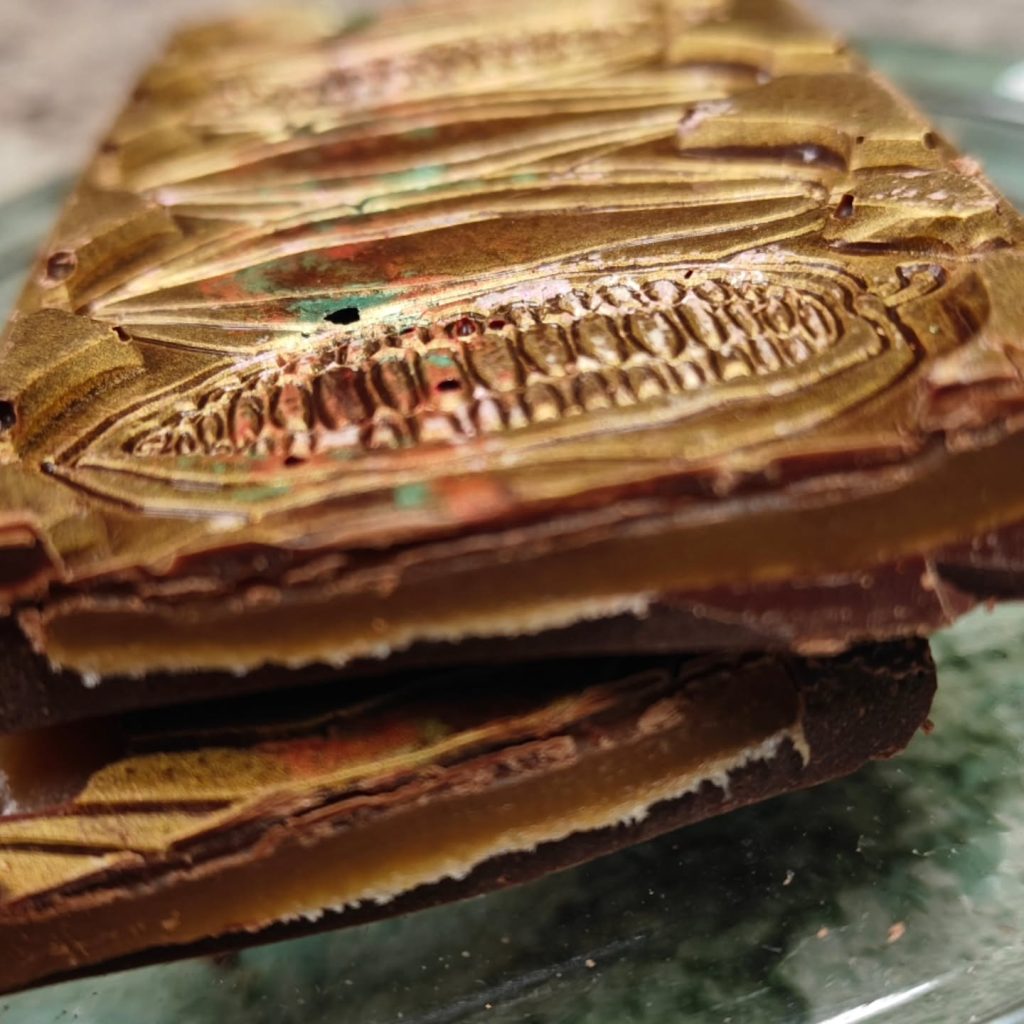 Caramel-filled Vietnam Tien Giang HCP13 Heirloom dark chocolate.