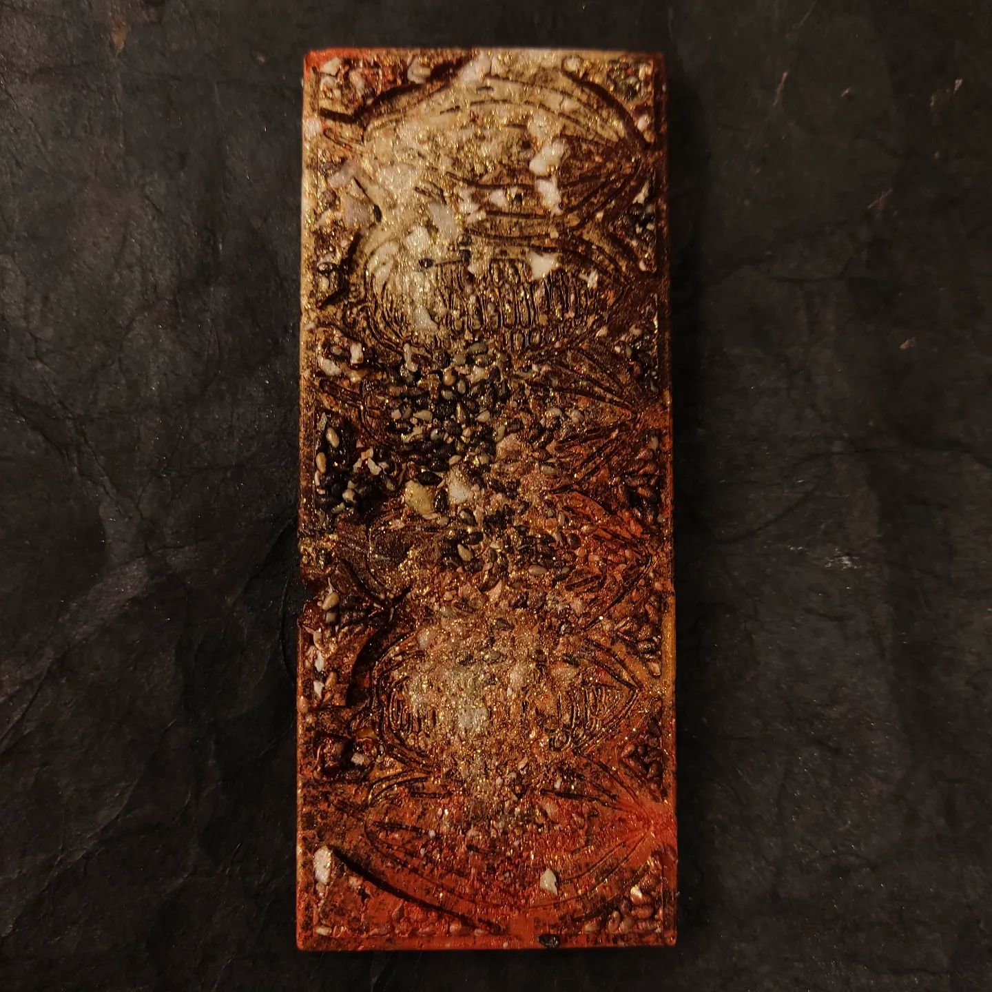 OFFHAND ELEGANCE bar. Ecuador 70% dark with praliné cashews and sesame seeds.