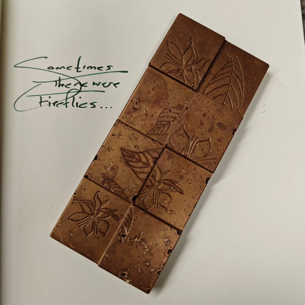 Bolivia Itenez HCP Heirloom No.2 wild harvest 62% dark milk chocolate with ginger, sapote seed, and Grenada nutmeg.