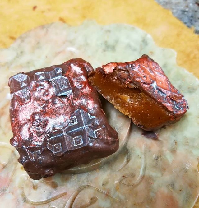Chocolatier Recipe Development Course Day 3: Flavor and Caramel June 27, 2018June 27, 2018A Day in the Life, Classes & Events THAI TEA CARAMEL with crushed cacao. Made by the Ecole Chocolat Chocolatier Recipe Development Course at Dancing Lion Chocolate. #chocolatier #chocolate #caramel #thaitea #cacao #ecolechocolatmanchester2018 #ecolechocolat