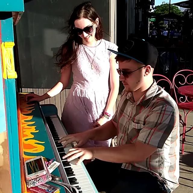 More Public Pianos. June 20, 2017June 21, 2017A Day in the Life, At Our Cafe, Past is Passed Customers Nate and Sam (aka Miranda) at one of Intown Manchester’s new public pianos. Their first date was several years ago at Dancing Lion Chocolate. Tomorrow they’re heading to New York for acting school. Our best wishes to them both!