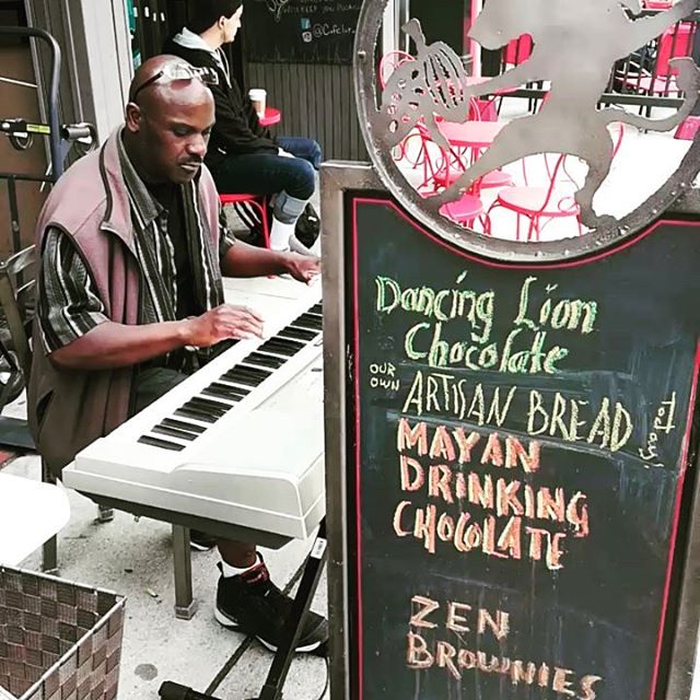 Musical Friday April 13, 2018April 13, 2018At Our Cafe, Past is Passed D Heywood on keyboard at the Shop today. Music and chocolate.