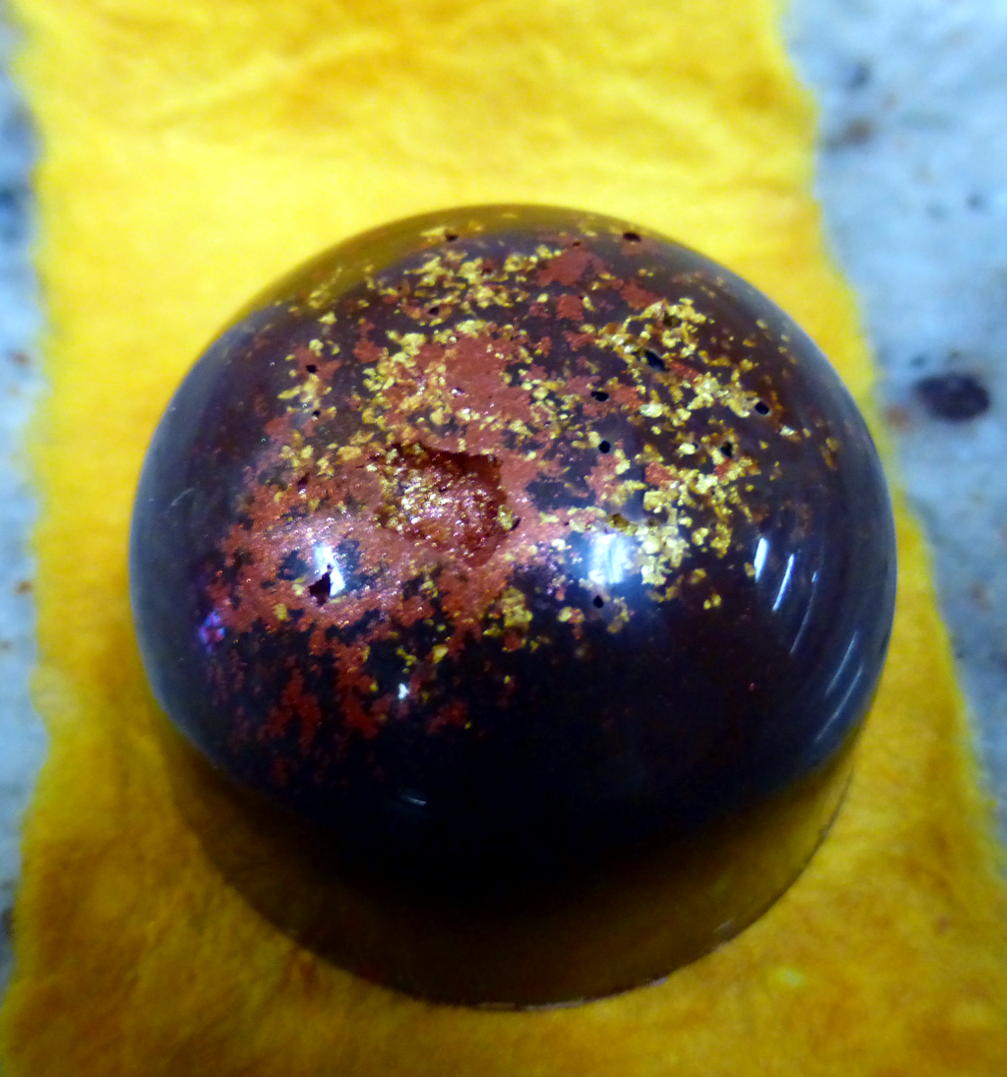 Extinct Guatemalan Finca Las Acacias white chocolate and caramelized minneola tangerine confit finished in Pacari Ecuador 70% dark chocolate.