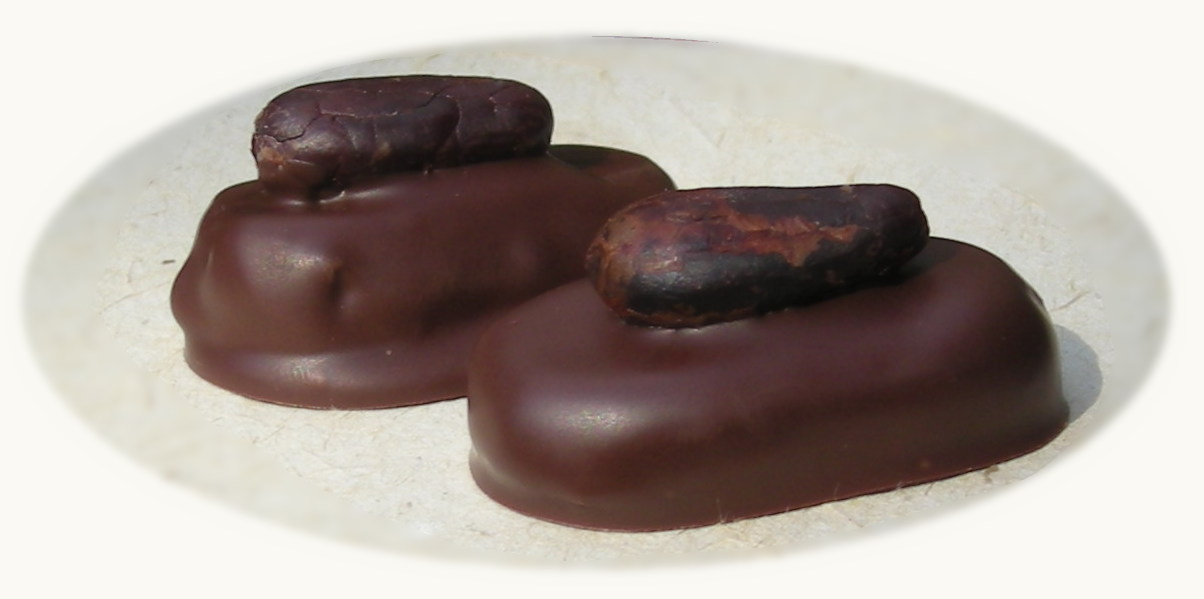 | Cacao. The source of chocolate. Corallo. Some of the finest cacao in the world. Imagine a blend of caramelized cream and the fresh, intense flavor of newly-harvested cacao. Palets of ganache topped with a whole cacao bean. Sao Tome e Principe, the essence of the bean. |