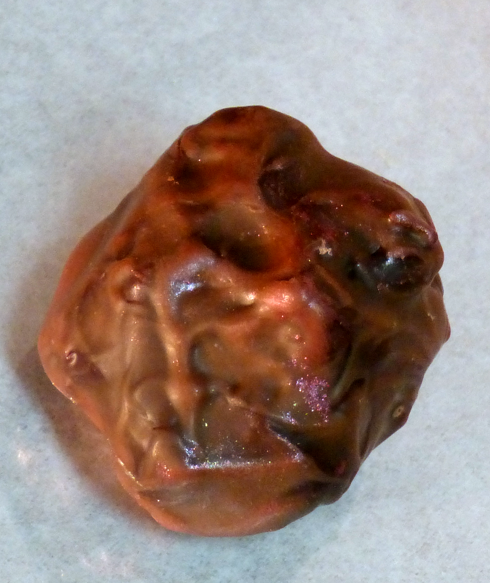 Sweet Madagascar milk chocolate with cherries and walnuts folded into rose blossom ganache and enrobed in extremely dark Ecuador 70% raw organic chocolate.