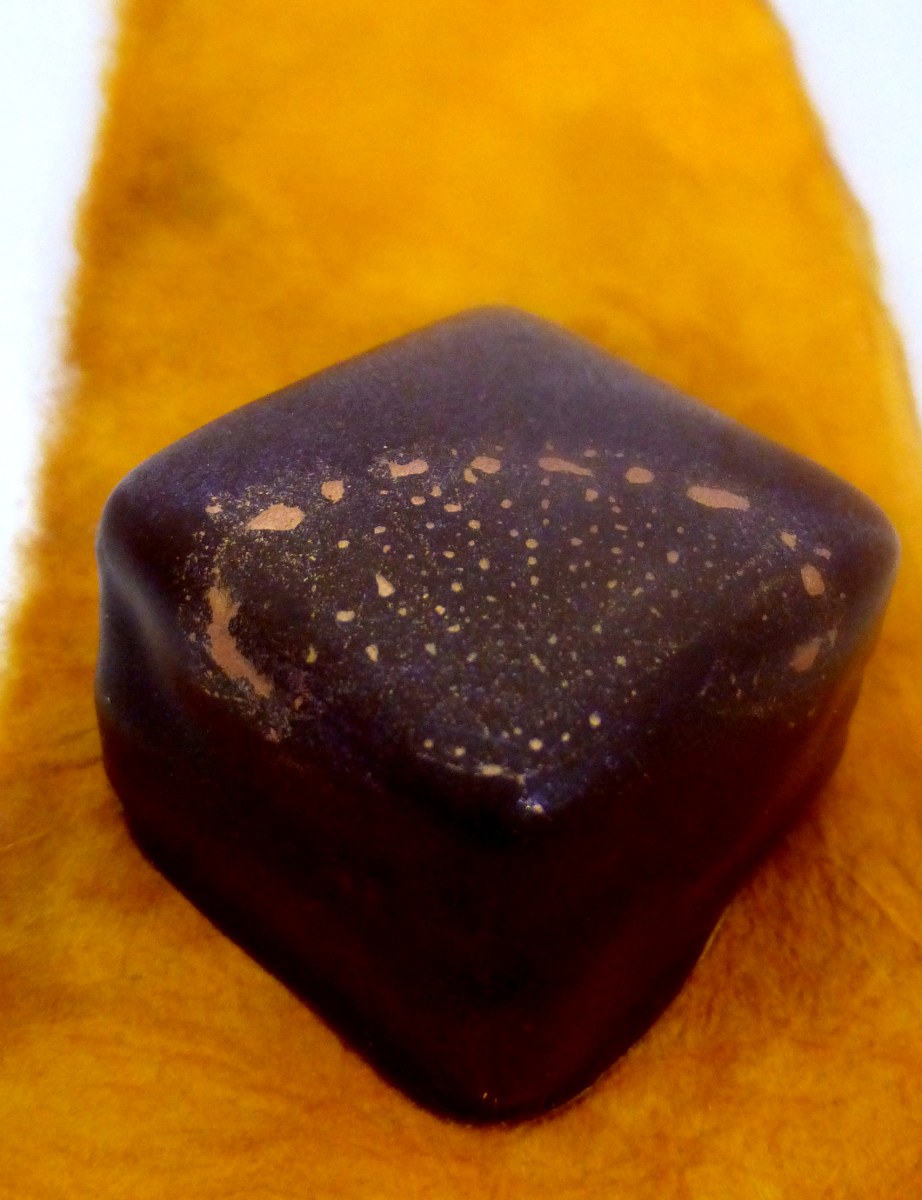 Four layers of Persimmon & Ceylon tea butter ganache dipped in Axiom 60% Dark Chocolate