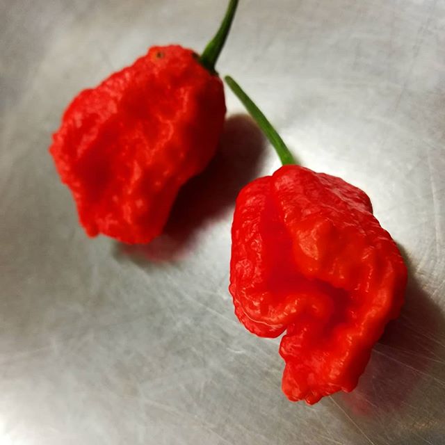 Ingredients… October 17, 2018October 17, 2018Past is Passed My buddy Larry just dropped off this pair of CAROLINA REAPER chiles. I’ll get these into something tasty for the Dia De Los Muertos.