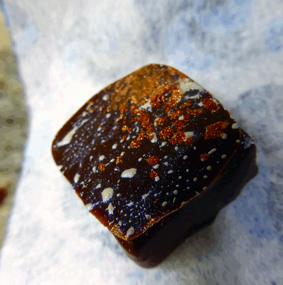 Fresh blueberries & lemons preserved in brandy with fried rosemary and thyme in Axiom 60% dark chocolate.