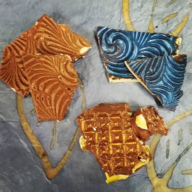 Nibbles February 10, 2018February 10, 2018Past is Passed, What's In My Box THREE BARKS (each a nibble, or 1/8th of a bite) – clockwise from top: Toasted coconut & and cashews, black tea with blueberry, and pistachio, cacao nibs & candied vanilla.