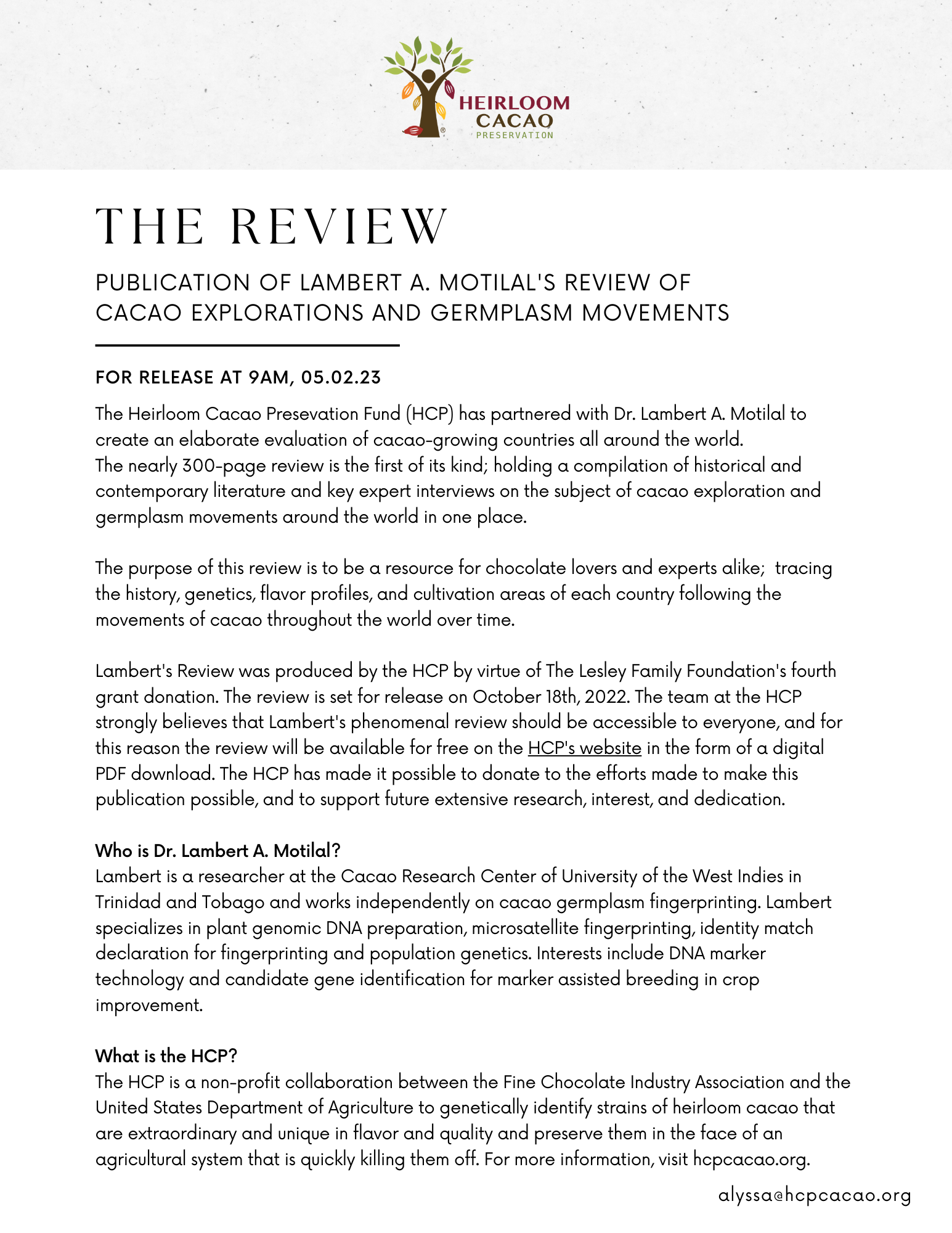 HEIRLOOM CACAO PRESERVATION (HCP) just released The Review, or fully titled, “The Review of Cacao Explorations and Germplasm Movements” by Dr. Lambert Motilal; the culmination of several years research and work aimed at creating a complete reference of historical origins and genetics of every cacao producing country in the world. This might not be your typical evening relaxation reading, though it is mine. It’s free to download, and if you’re in the chocolate business, you should read it.
