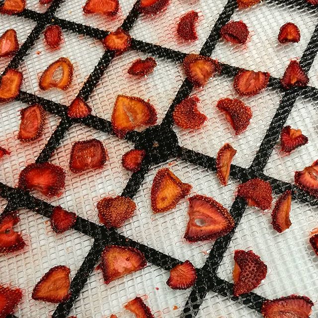 Drying strawberries, molding bars, making the base for this year’s first ice cream batch (chocolate plum). Alan Parsons Project “Turn of a Friendly Card” loud in the kitchen this morning.