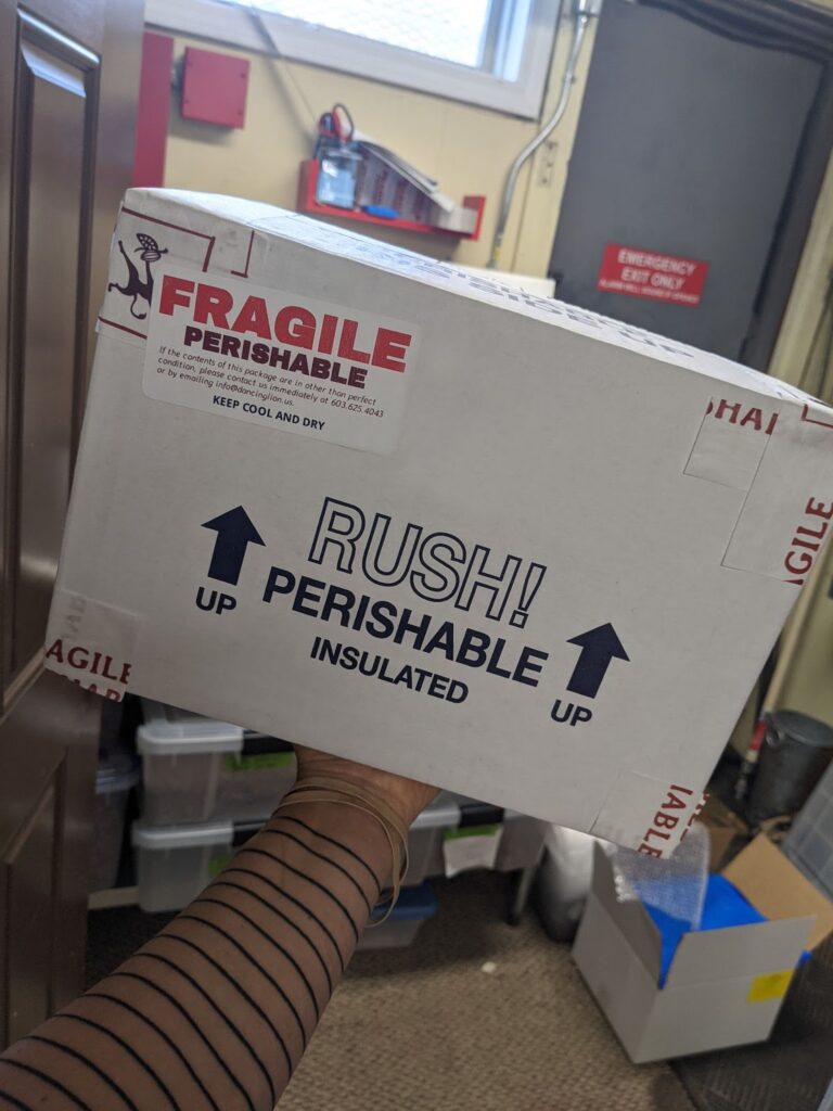 We’re in the process of shifting to a new supplier for our cold pack packaging who make their polar packs, not with styrofoam, but with ‘mineral fiber and plastic that is biodegradable.