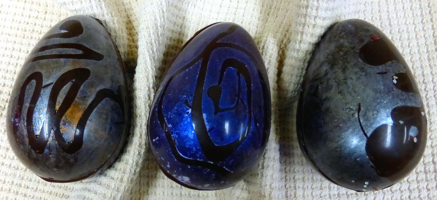 Freshly hatched Chocolate Seder Eggs for your Passover table. We have exactly these three! From the left: