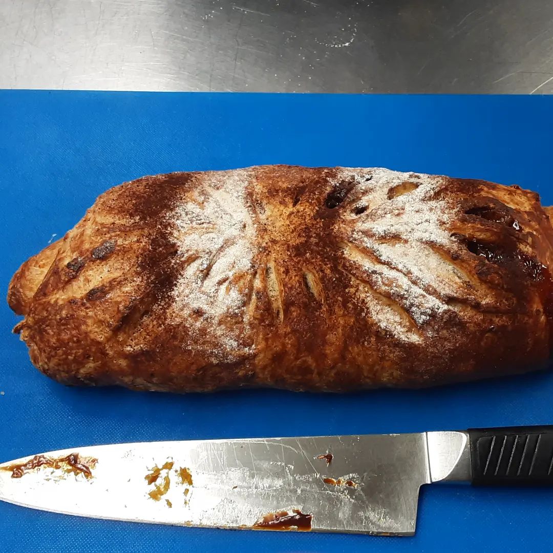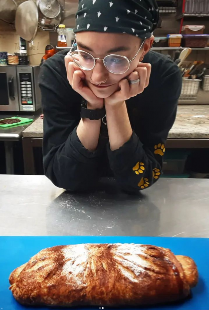 SUPERCROISSANT. We call it “staff lunch,” made from croissant dough scraps and filled with cheese, caramel, and a bit of white chocolate. Meanwhile, Chocolatier Rachel recovers from busy morning of helping me make croissants.