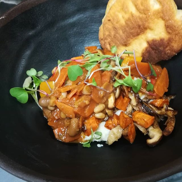 April 26, 2019April 26, 2019A Day in the Life The first plating of this evening’s South African dinner, $14 from Eterna Pop-up Restaurant at Dancing Lion Chocolate. We have room for walk-ins this tonight, so come on by. Vegetarian option available.