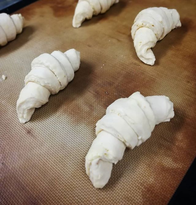 Making beautiful croissants September 14, 2018September 19, 2018A Day in the Life Tomorrow’s almond croissants today. They need to bake and sit overnight so they can be stuffed with almond cream and rebaked.Croissants this weekend.