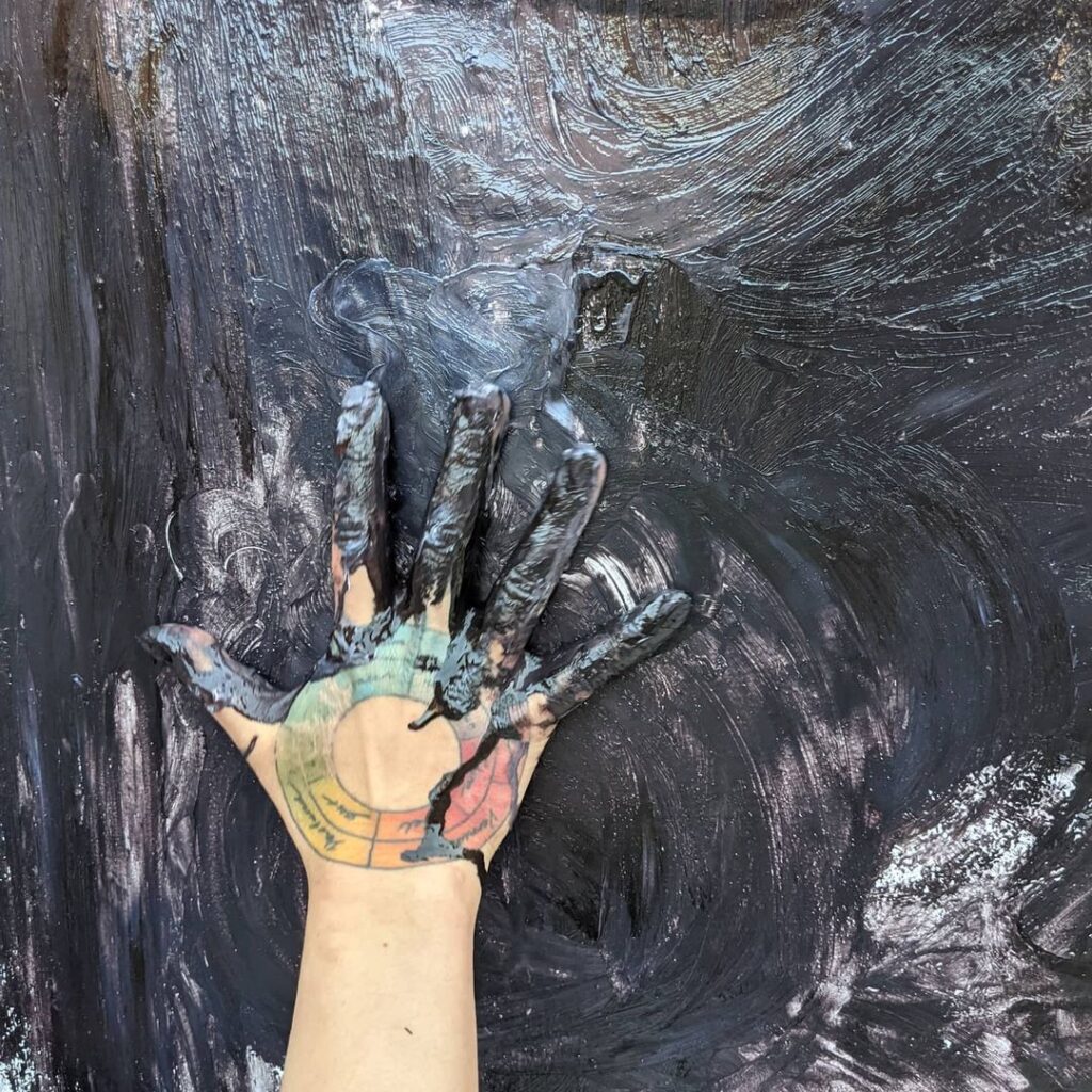 I’ve wanted art back here since I renovated the shop. But the right art needs the right artist, at right time, with the right thing to say. After ten years at 917 Elm Street, Dancing Lion Chocolate knows what it wants to say. The end of a crazy wild once in an age year is the right time. An edgy Persian-American painter poised between attitude and inner peace is the right person.