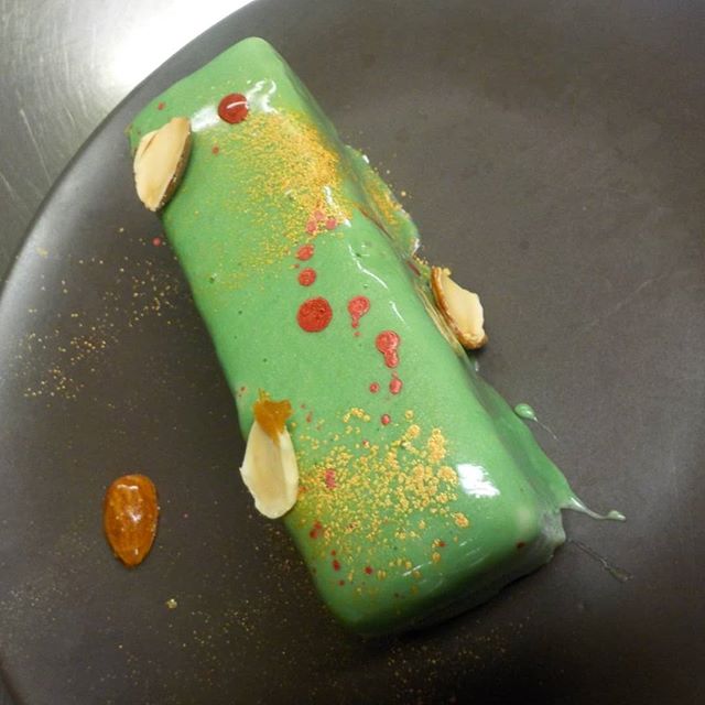 August 17, 2019October 3, 2019At Our Cafe Dessert Night: Entremet Tonight’s Entremet – Almond mousse, fresh lemon basil sponge, gelee, almond pralinĂ© and Ghana dark chocolate enrobed in Ivoire white chocolate glaze