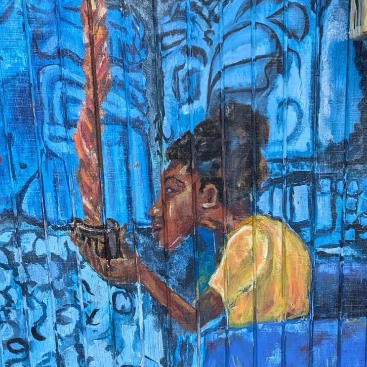 October 8, 2024October 9, 2024At Our Cafe Mural: Girl Receiving Chocolate Girl receiving chocolate in a bowl, from the mural on back wall of Dancing Lion Chocolate, by Yasamin Safarzadeh. @phat_riot …