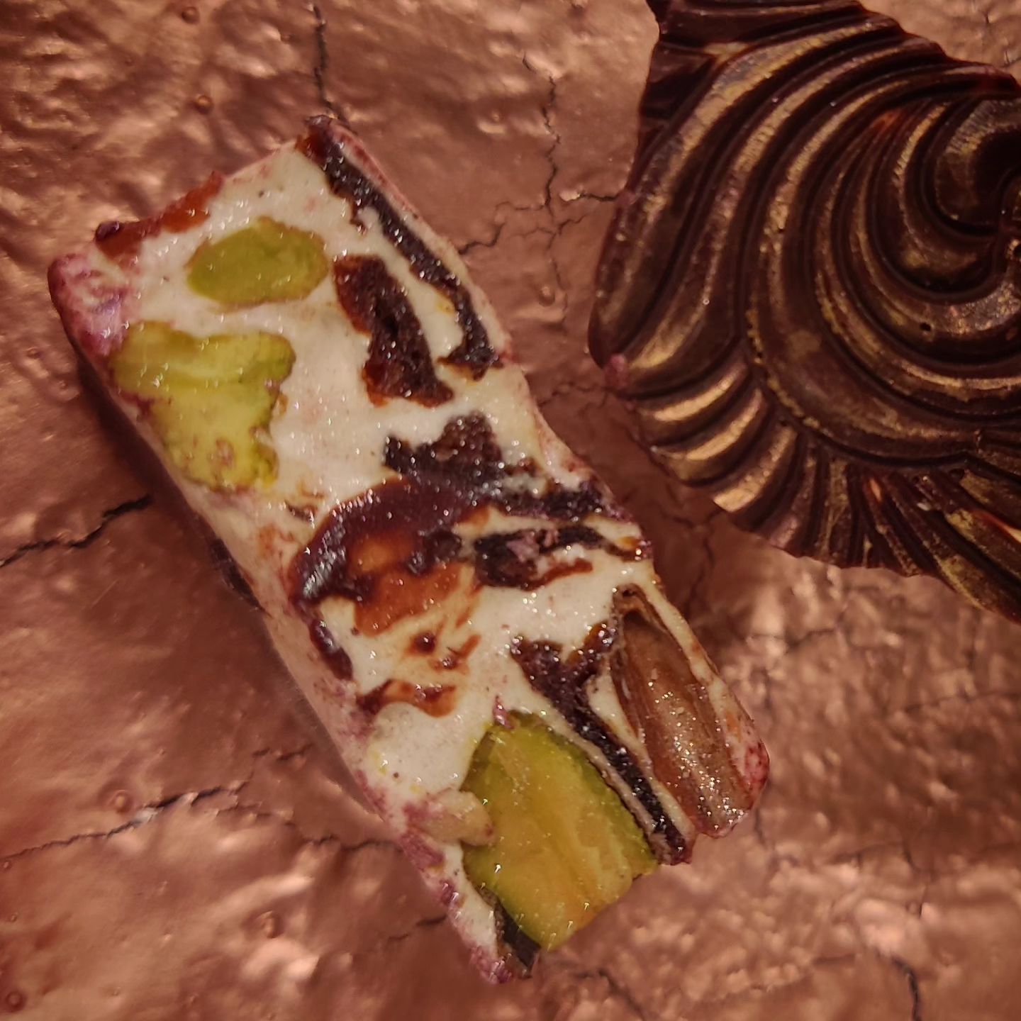 July 26, 2024July 26, 2024What's In My Box Nougat Dipping pistachio Almond Apricot Saffron nougat in Mexico Soconusco dark chocolate. #chocolatier #nougat @agroflorestamx